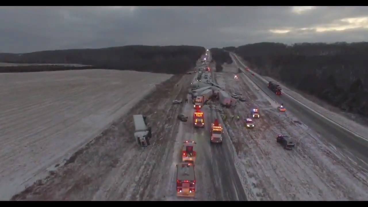 Pile-up road accident in a wide highway