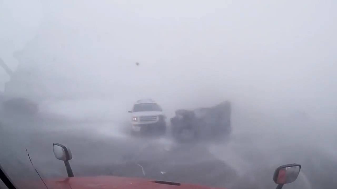 Road accident during a white-out weather
